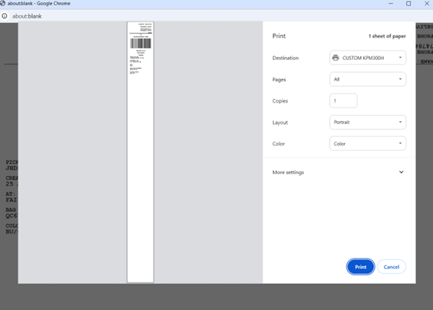 For a non-CUTE workstation, a print modal will display.
