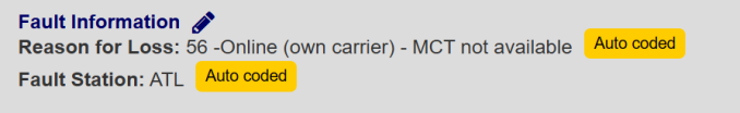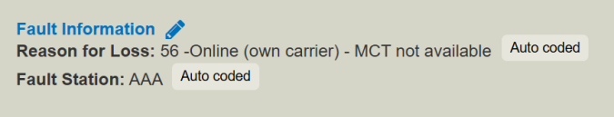 For all file creations, a visual, on-screen indicator has been implemented to highlight the automated file coding of two fields: Reason For Loss (RFL) and Fault Station (FS). The on-screen indicator will display the text: Auto coded.